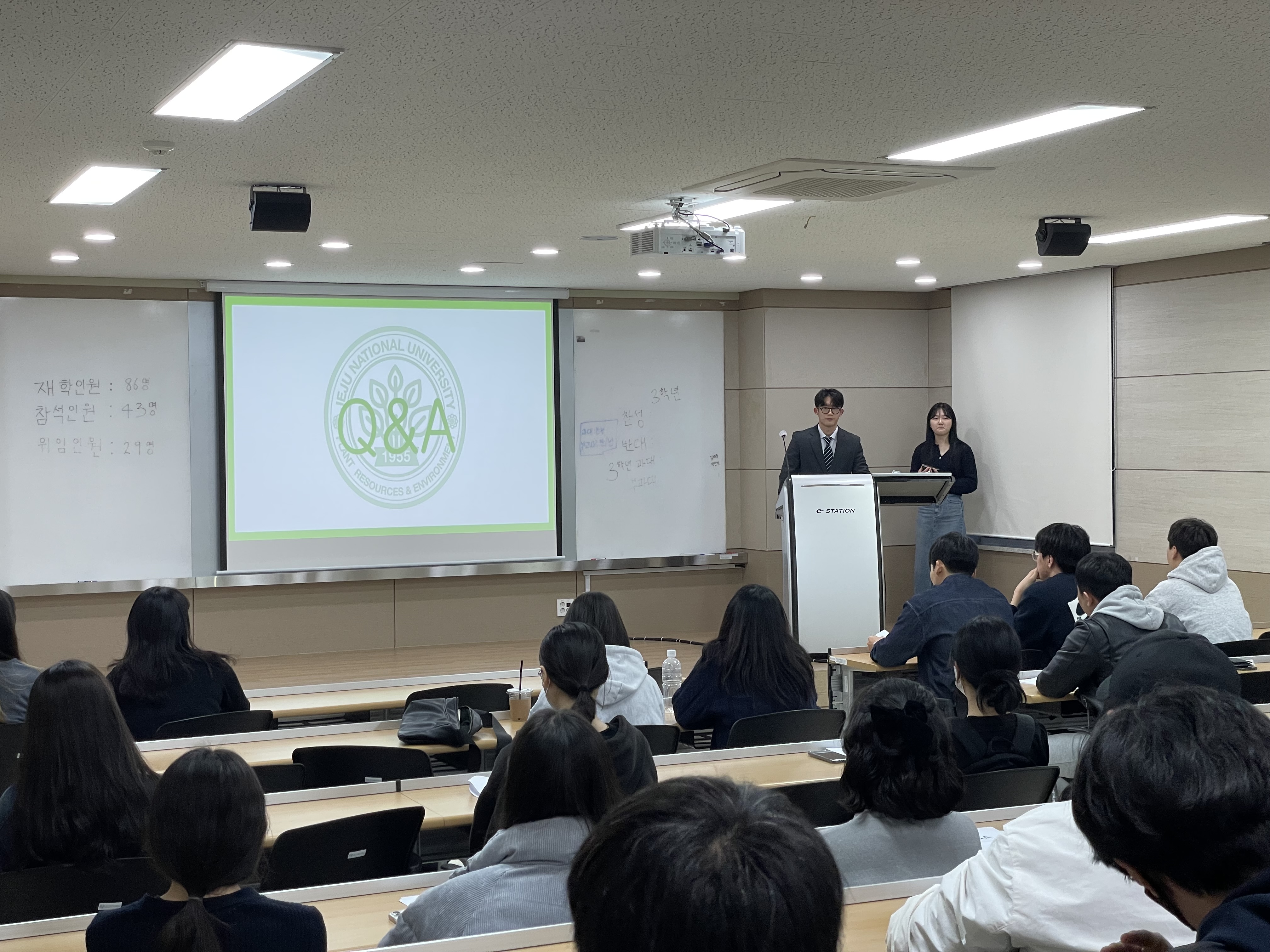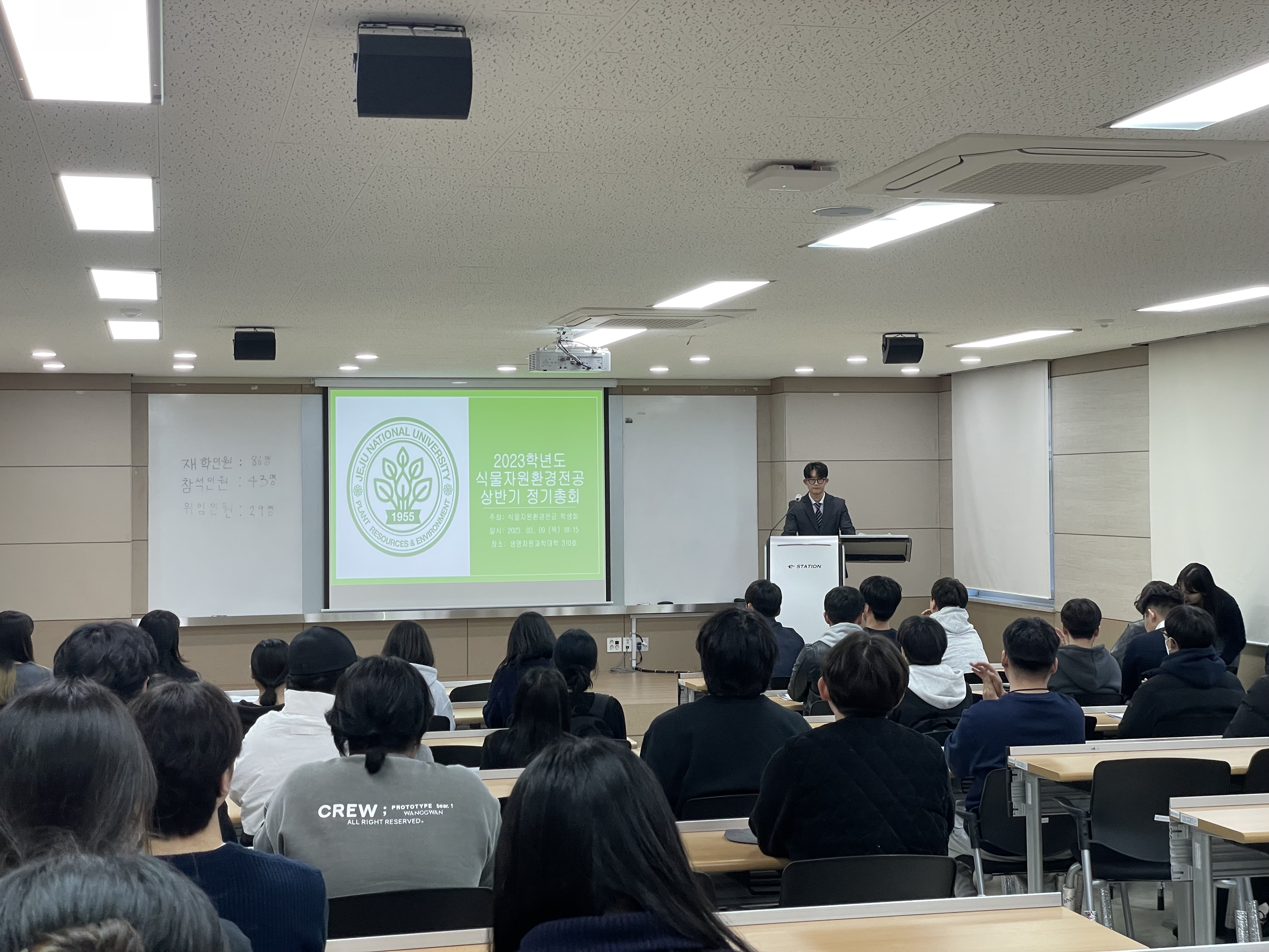 2023년 3월 9일 목요일에 생명자원과학대학 본관 310호 강의실에서 상반기 정기총회를 진행하였습니다.